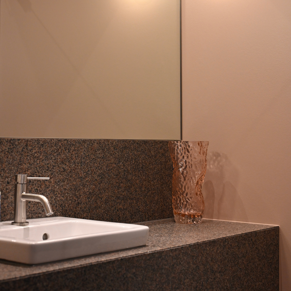 Extensive renovations of the old house started during the winter. As the house had been rented out for many years, it was, to say the least, worn out and not well-planned. Walls were moved, and new bathrooms and kitchens were built. The goal was, of course, to highlight all the old details of the house, such as beadboard paneling and beautiful woodwork. For the bathrooms, we dreamed of a classic light limestone. However, after visiting Östersjösten, we fell in love with the darker, red limestone, which we chose for the larger bathroom. For the children's bathroom, we opted for a beautiful, variegated Swedish granite. The stone extends across the floors, walls, and even an integrated vanity.