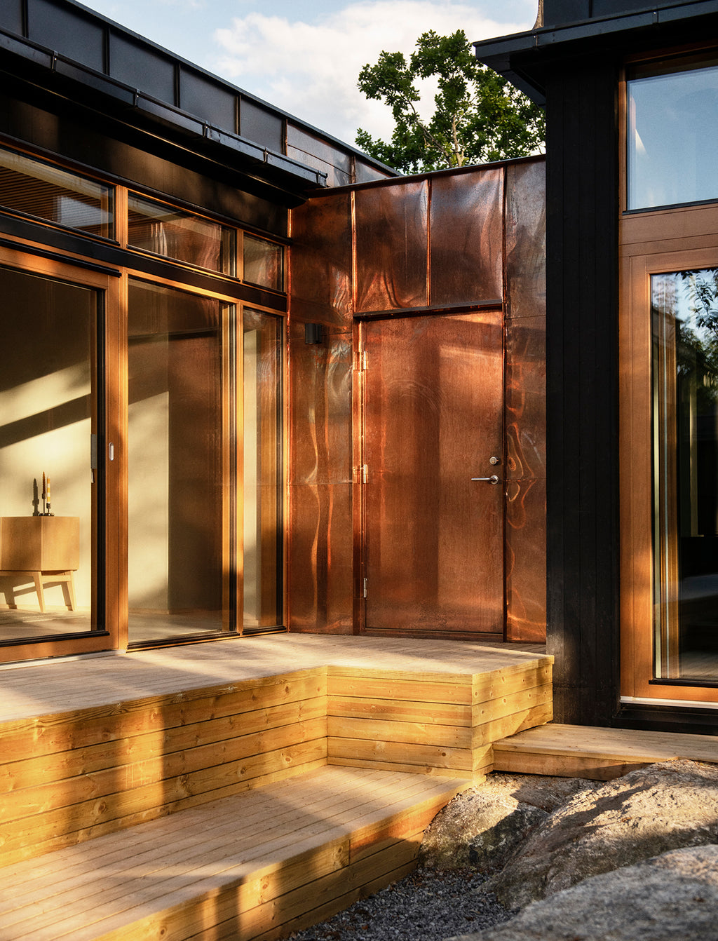 Auf einem Felsen im Stockholmer Schärengarten, mit Blick auf das Wasser, ragt diese atemberaubende Villa zwischen den Baumkronen hervor. Das Projekt Villa Strömma wurde von der Projektentwicklerin Jenny Callenholt, Gründerin von Q Collective Development, zusammen mit dem Architekturbüro Andrén Fogelström und der Innenarchitektin Rebecka Haymoz realisiert.